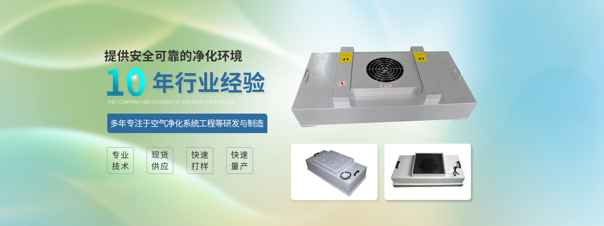 我們公司產品包括初、中、高效空氣過濾器,風機過濾單元(FFU),潔凈棚、潔凈工作臺、百級層流罩、稱量罩,高效送風口、風淋室、潔凈采樣車、通風柜、生物安全柜、傳遞窗、風機箱等空調凈化配套產品及專用材料。