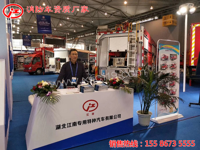 隨州展團的展位號N604-605,我公司參加此次展覽攜重汽T5G原裝雙排干粉.泡沫.水三連用消防車驚艷亮相,吸引了不少國內外的領導及新老用戶的眼球,歡迎廣大新老客戶領導來展廳參觀考察