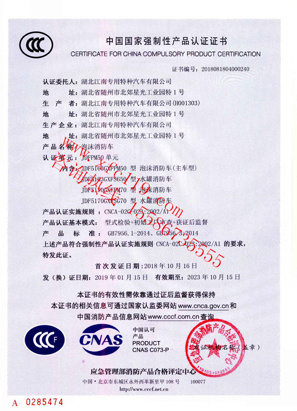 我公司湖北江南專用特種汽車有限公司一直致力于創(chuàng)新研發(fā)新型消防車車型,目前又有2類國(guó)五消防車車型的3C已經(jīng)審批下發(fā)。