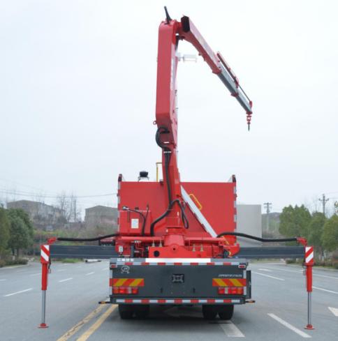 整車主要由汕德卡ZZ5206N471GF5特種作業(yè)車底盤、上裝廂體、電源保障系統(tǒng)、隨車起重折臂吊機(jī)、高桿照明系統(tǒng)、器材艙、平式/立式拓展板機(jī)構(gòu)、卷簾門、梯臺(tái)及護(hù)欄、警燈警號(hào)、隨車器材等組成。