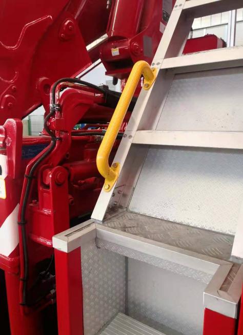 梯臺(tái)、扶手及護(hù)欄:為便于取用/收納應(yīng)急救援裝備器材,符合安全和人機(jī)工程要求,本車根據(jù)實(shí)際使用需要,設(shè)計(jì)有各種梯臺(tái)、扶手、安全護(hù)欄等輔助設(shè)施。