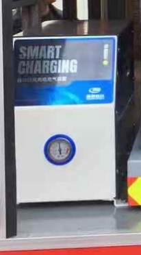 5.10自動(dòng)分離式充電充氣裝置:自動(dòng)充電充氣裝置采用用蘇州怡達(dá)新能源科技有限公司YD-SES30A型自動(dòng)脫離充電充氣系統(tǒng),由自動(dòng)繞線器提供的220V電源,通過分離式彈性插頭給車輛供電供氣,當(dāng)電瓶充滿、儲(chǔ)氣罐壓力達(dá)到設(shè)定值后系統(tǒng)自動(dòng)停止工作,當(dāng)需要出動(dòng)車輛時(shí),駕駛員只需打開啟動(dòng)鑰匙,車輛啟動(dòng)時(shí)分離式彈性插頭自動(dòng)與車輛充電充氣接口分離,當(dāng)出現(xiàn)異常情況不能自動(dòng)分離時(shí),會(huì)發(fā)出聲光報(bào)警提醒駕駛員查看故障或手動(dòng)分離,達(dá)到快速出動(dòng)車輛的目的。