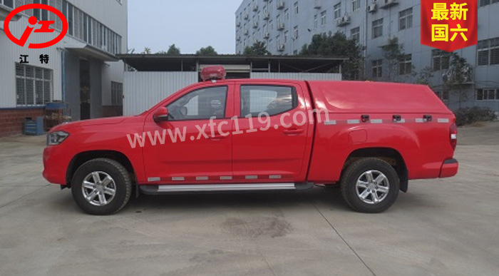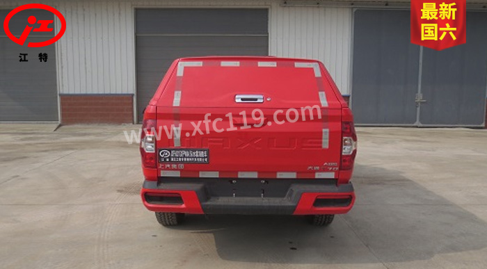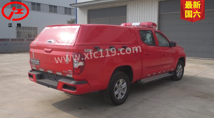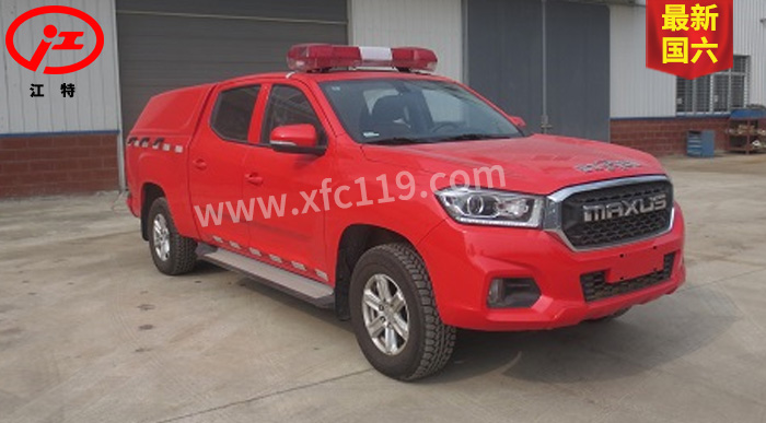 江特牌JDF5030GXFPW0.4/S6水霧消防車整車為國六消防車車型,采用上汽大通汽車有限公司生產的皮卡底盤SH1032E6DC-P改裝而成,