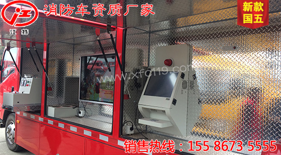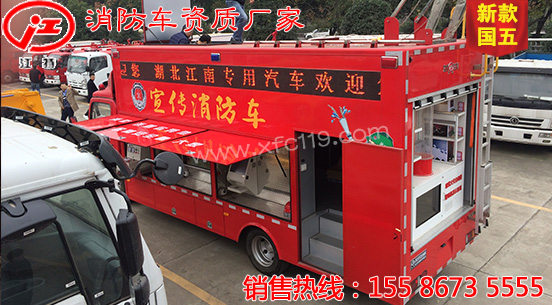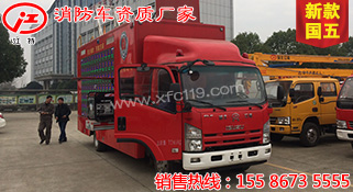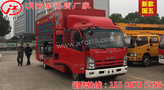 此圖片為新款國五五十鈴消防宣傳車,該車型采用重慶五十鈴公司QL1100A8MAY型國五優(yōu)質(zhì)底盤,軸距4475MM,配置節(jié)能環(huán)保靜音的4HK1-TC51五十鈴191馬力發(fā)動(dòng)機(jī),底盤扎實(shí),動(dòng)力強(qiáng)勁,機(jī)動(dòng)性強(qiáng)。